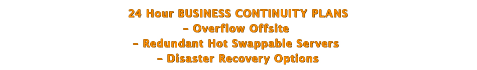 TASterix 24 HR BUSINESS CONTINUITY Click here to view diagram ![]() When purchasing the TASterix solution, 24 hour Business Continuity and Disaster Recovery is built within our software and hardware solution but may be customized. Option #2 - Current TAS Vendor Are you heavily invested in a current provider but do not have the economic or labor resources to provide adequate disaster recovery should your server crash or have a Telco outage ? Buy or Rent our TASterix Disaster Recovery Solution either premise based or "housed" in a data center for 100% redundancy and 24 hour business continuity. ...Design your own 24hr BUSINESS CONTINUITY Plan in conjunction with TASterix... |